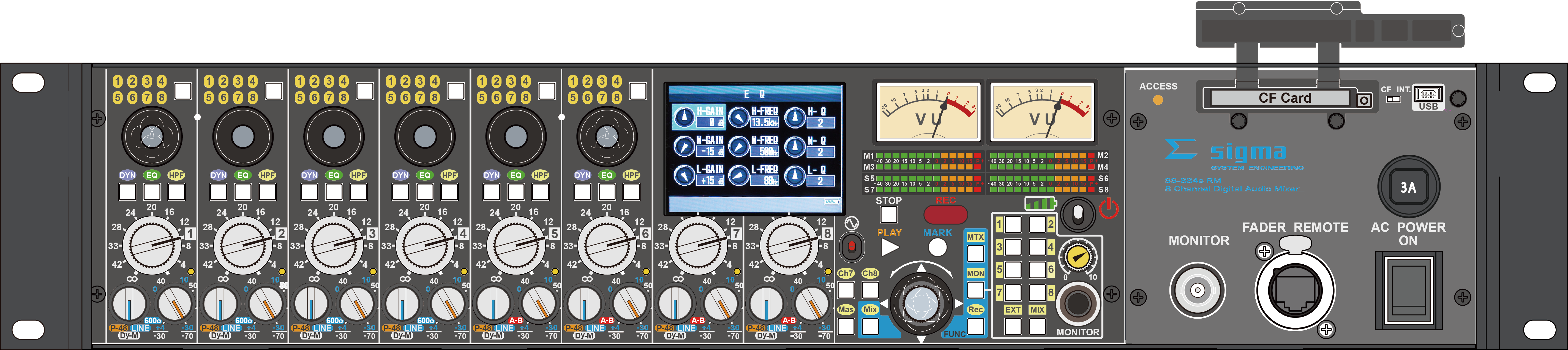 SS-884Rex, SS-884eRM用の8chリモートフェーダーボックスです。 フェーダーは100mmストロークを採用しました。MixBus選択機能付き。 定価 ¥332,200(税込) |